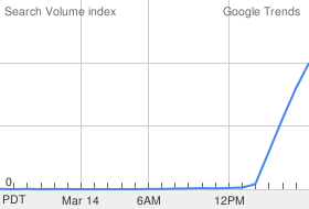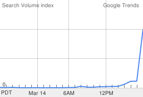 The really interesting thing is to see the spike in people who searched for “College Basketball Invitational”. The NIT selection show ended at 9:30, and it seems people frantically hunted after then for another bubble to ride.