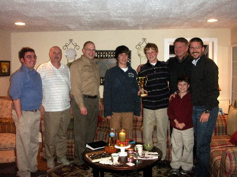 Even with this change, the men reclaimed their title, winning 54-49. Josh (the Yoga poser of this year) proudly holds the cup.