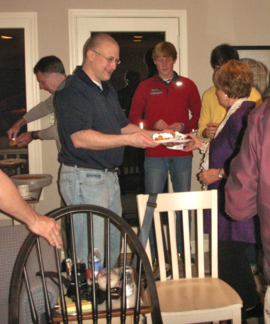 A midst the confusion, the sister scorekeeper spoke up and said that she had made an error, and the men only had 60. This caused a minor uproar among the men’s team – but Jeff calmed us down (and wanted to eat) – so for the third year in a row Jeff cut, Jim plopped on the whip cream, and the rest of the men served with dignity (as we always do).